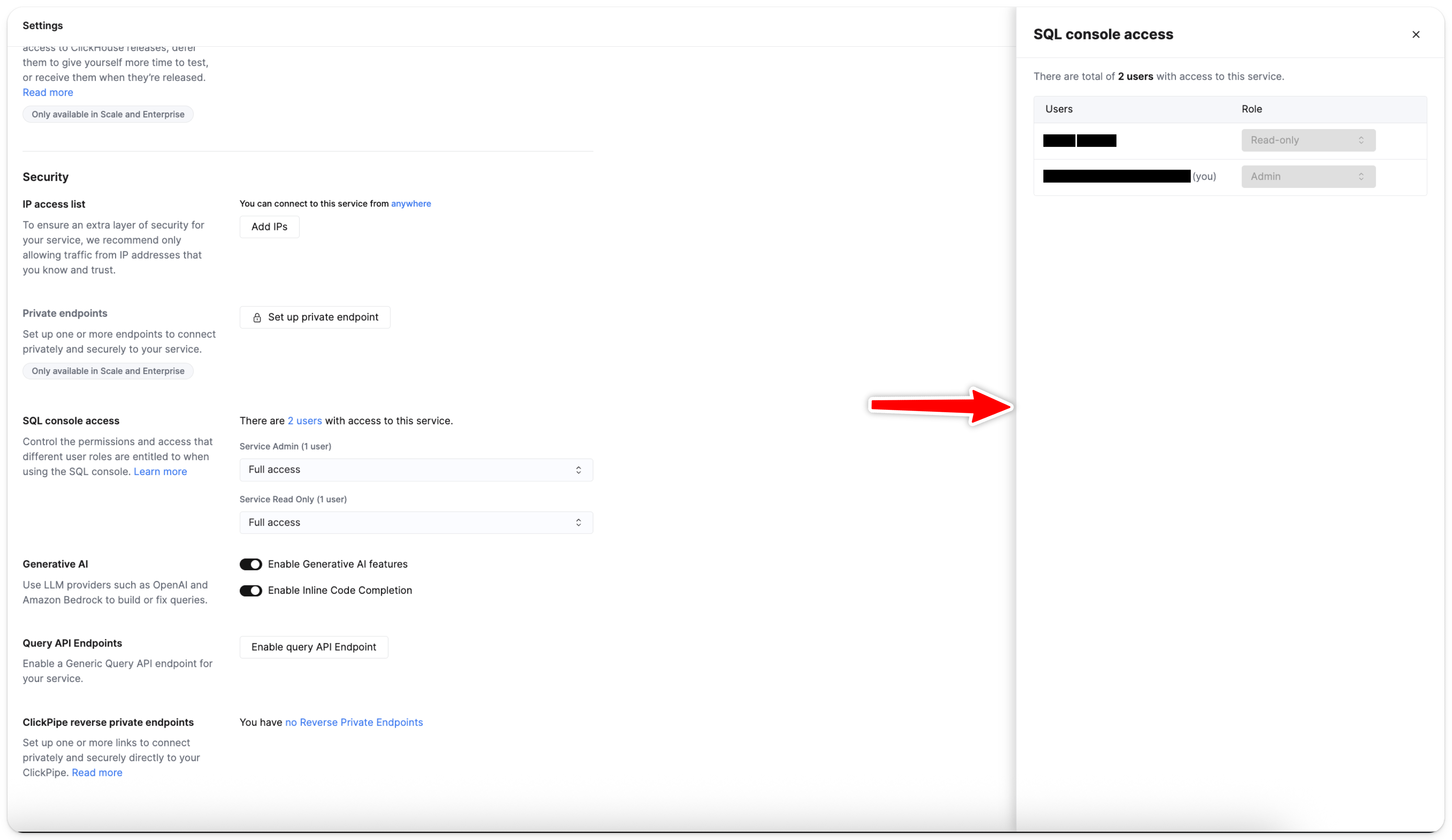 Выберите раскрывающееся меню для Service Read Only, чтобы изменить настройки контроля доступа для ролей Service Read Only: